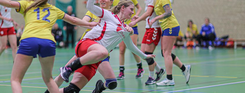 De 26-23 overwinning was een regelrechte stunt, aangezien de ploeg uit Maasbree in tegenstelling tot de verloren uitwedstrijd (21-20) door blessures incompleet aan de afworp verscheen. Na een aarzelende start namen de gastvrouwen het heft niettemin stevig in handen. Door verdedigend de tactische afspraken beter uit te voeren, wisten ze de 3-7 achterstand om te buigen in een 11-8 voorsprong bij rust. Ook het aanvalsspel kreeg meer vorm. De doelkansen namen toe en werden goed benut. Het rendement lag beduidend hoger dan de afgelopen weken.